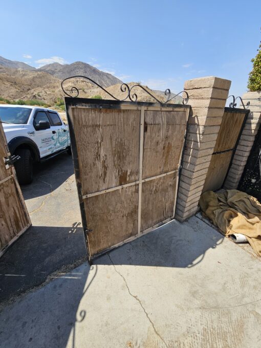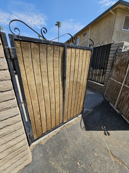 At Indian Creek Villas in Palm Desert, CA, the gate surrounding the community’s maintenance area was showing its age. The original wood paneling had weathered and begun to fail, leaving the gate looking rough and worn down. Beyond appearance, the deteriorating wood also compromised privacy and long-term durability.